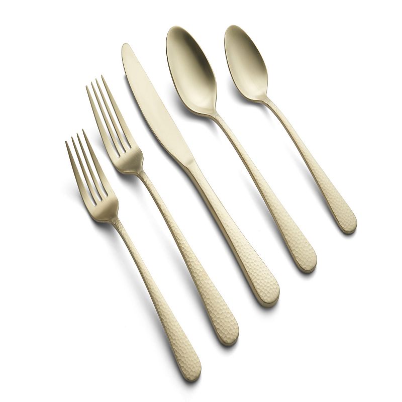 Cambridge Keene Hammered 20-pc. Flatware Set, BeigeMake a statement at mealtime with this Cambridge Keene Hammered flatware set. Make a statement at mealtime with this Cambridge Keene Hammered flatware set. Softly widened handles with hammered detailsWHAT'S INCLUDED 4 salad forks, 4 dinner forks, 4 dinner knives, 4 dinner spoons & 4 teaspoons Stainless Steel DishwasherCambridge