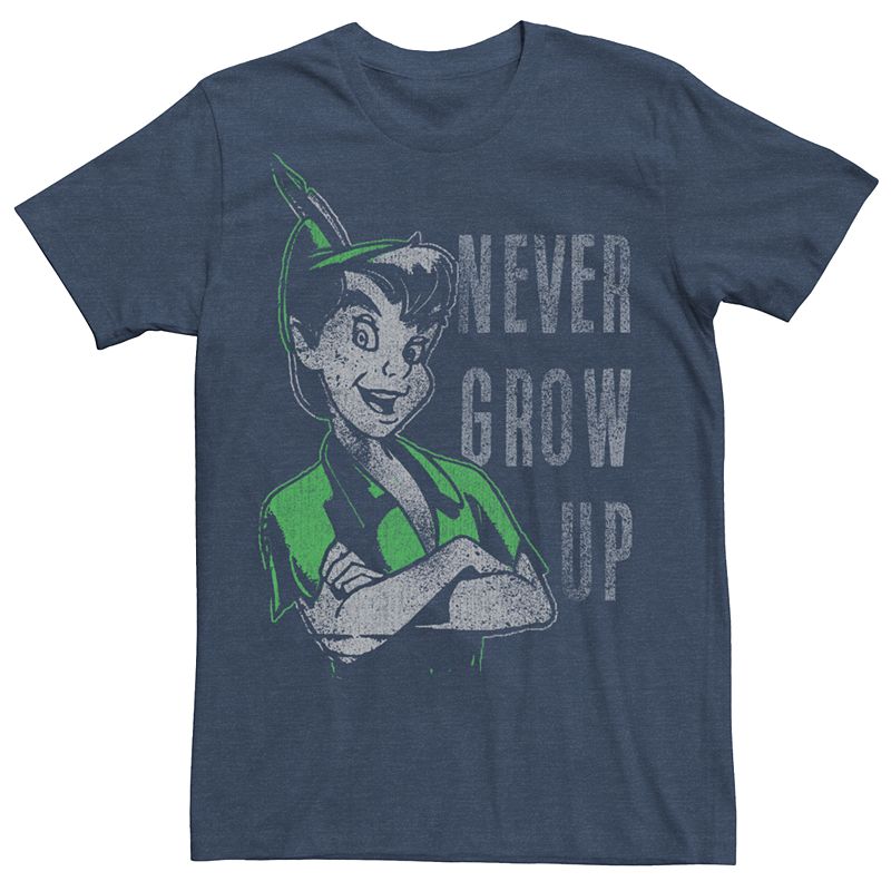 Disney's Peter Pan Vintage Never Grow Up Men's Tee, Size: XL, Navy GreyKeep your childhood spirit alive with this Peter Pan vintage tee. Disney Keep your childhood spirit alive with this Peter Pan vintage tee. Disney Short sleeves CrewneckFABRIC & CARE Cotton, polyester Machine wash Imported Size: XL. Color: Navy Heather. Gender: male. Age Group: adult. Pattern: Graphic.Disney