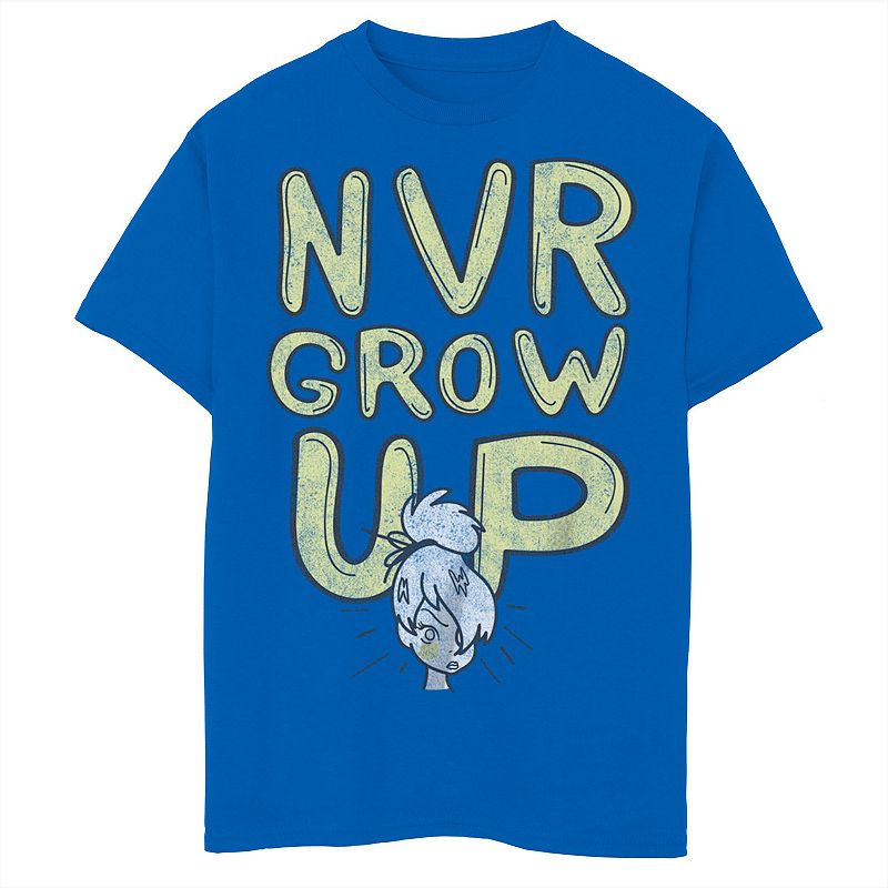 Disney's Peter Pan Boys 8-20 Tinker Bell Never Grow Up Graphic Tee, Boy's, Size: Medium, RoyalYour fly guy will love his look in this Disney's Peter Pan boys' Tinker Bell Never Grow Up Graphic Tee. Disney Your fly guy will love his look in this Disney's Peter Pan boys' Tinker Bell Never Grow Up Graphic Tee. Disney Crewneck Short sleevesFABRIC & CARE Cotton Machine wash Imported Size: Medium. Color: Royal. GenDisney