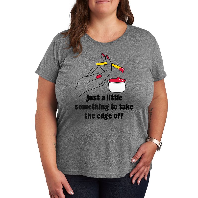 Plus Take The Edge Off French Fry Graphic Tee, Girl's, Size: 1XL, GrayShe will love showing off her style in this Plus Take The Edge Off French Fry Graphic Tee. FEATURES Short sleeves CrewneckFABRIC & CARE Solid Colors: Cotton ; Heather Colors: Cotton/Polyester Machine wash Imported Size: 1X. Color: Gray. Gender: female. Age Group: kids.Licensed Character