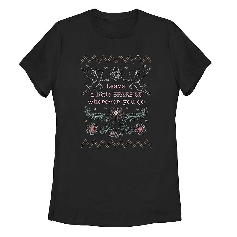 Disney's Peter Pan Tinkerbell Juniors' Sparkle Tee, Girl's, Size: Medium, BlackAre you a style queen like Tinkerbell? "Leave a little SPARKLE wherever you go" in this trendy black Peter Pan inspired logo tee. Are you a style queen like Tinkerbell? "Leave a little SPARKLE wherever you go" in this trendy black Peter Pan inspired logo tee. Crewneck JerseyFABRIC & CARE Imported Machine wash - DelicatDisney