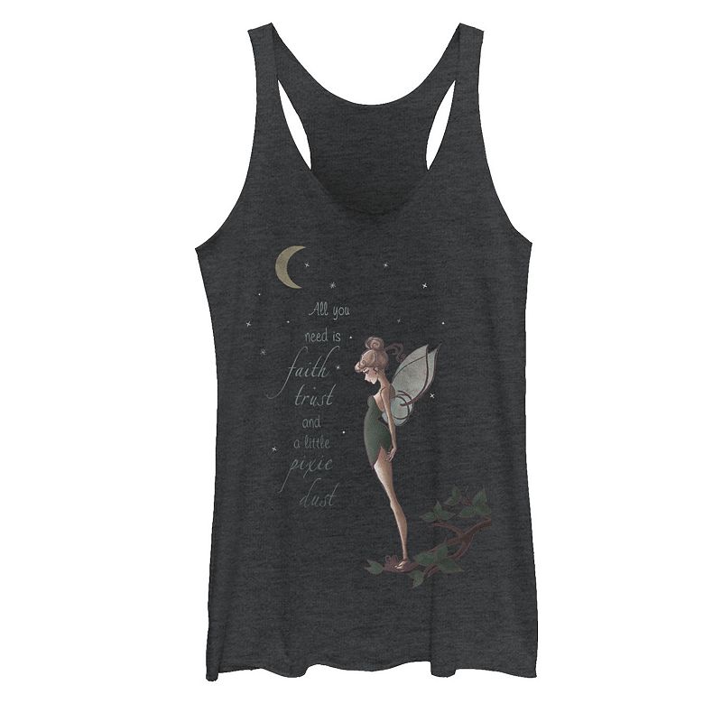 Juniors' Disney's Peter Pan Tinkerbell Moon Quote Art Tank Top, Girl's, Size: Small, Black GreyLet everyone know that you're full of faith, trust and pixie dust when you wear this delightful juniors' graphic tank top featuring Peter Pan's Tinkerbell. Let everyone know that you're full of faith, trust and pixie dust when you wear this delightful juniors' graphic tank top featuring Peter Pan's Tinkerbell. ScoopnecDisney