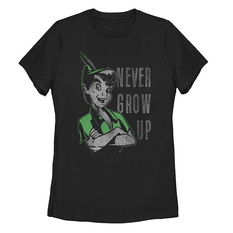 Disney's Peter Pan Juniors' "Never Grow Up" Retro Tee, Girl's, Size: XL, BlackPeter Pan will be young forever and so will you while looking great in this "Never Grow Up" black retro tee! Peter Pan will be young forever and so will you while looking great in this "Never Grow Up" black retro tee! Crewneck JerseyFABRIC & CARE Imported Machine wash - Delicate Cotton Size: X Large. Gender: female. AgDisney