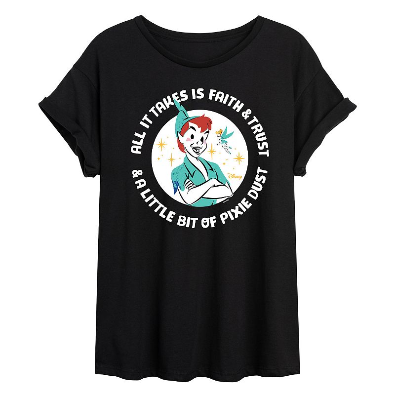 Disney's Peter Pan Juniors' Faith Trust Pixie Flowy Graphic Tee, Girl's, Size: Medium, BlackAdd fun new style to your casual wardrobe with this Disney's Peter Pan Juniors' Faith Trust Pixie Flowy Graphic Tee. Disney Add fun new style to your casual wardrobe with this Disney's Peter Pan Juniors' Faith Trust Pixie Flowy Graphic Tee. Disney FEATURES Short sleeves ScoopneckFABRIC & CARE Cotton, polyester MachinDisney