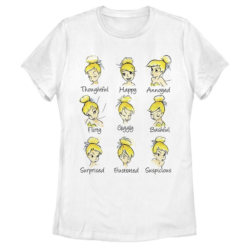 Disney's Peter Pan Tinkerbell Emotions Sketch Juniors' Tee, Girl's, Size: XXL, WhiteShowcase the many sides of your whimsical personality with the delightful Tinkerbell emotions tee. In white. © Disney Crewneck Short sleeves Jersey constructionFABRIC & CARE Cotton Machine wash Size: Xxl. Gender: female. Age Group: kids. Pattern: Graphic. Material: Polyester|Cotton.Disney