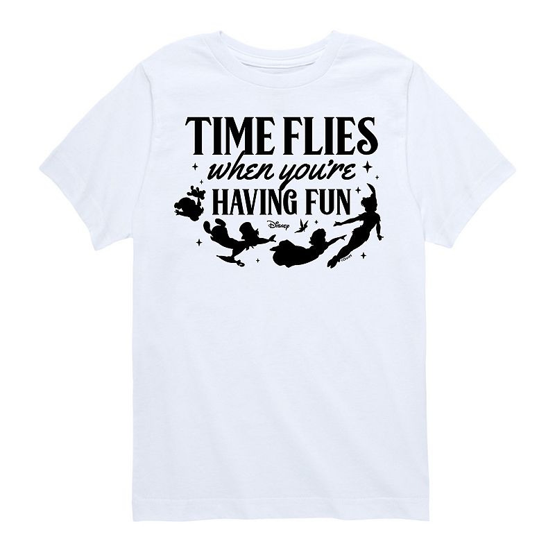 Disney's Peter Pan Boys 8-20 Time Flies When You're Having Fun Graphic Tee, Boy's, Size: Small, WhiteHe'll love the whimsical style of this Disney's Peter Pan Boys 8-20 Time Flies When You're Having Fun Graphic Tee. Disney FEATURES Crewneck Short sleevesFABRIC & CARE Solid colors: cotton, Heather: cotton, polyester Machine wash Imported Size: Small. Color: White. Gender: male. Age Group: kids.Disney