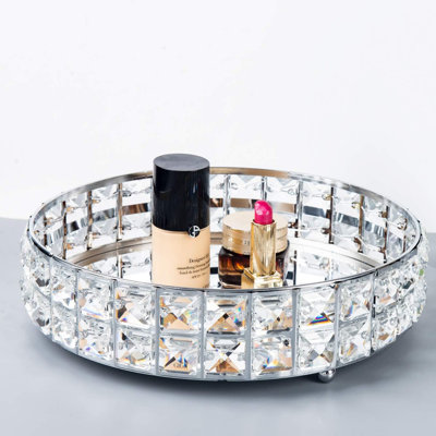 Vanity Makeup Tray Mirrored Ornate Jewelry Trinket Tray Organizer10 x 10 x 2.75 Inches(L x W x H) / 25 x 25 x 7cm;Net Weight: 2.53lb/ 1152g; Crystal Beads strung Metal Rings. Glass Mirror Surface with Sturdy Base.Two Layers Shinning Crystal, Thick Heavy Glass Mirror, Anti- Scratch Glass Surface to hold Heavy Staffs. Durable Modern StylishGreat Organize Jewelry, Trinket, Rings, NecklSuprib