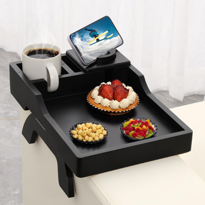 Sofa Arm Tray Table, Multi-Function Folding TV Trays With 360Rotating Phone&Pad Bracket, Couch Table Tray For Eating And DrinkThis product adjustable springs accommodate various sofa armrest shapes (up to 13" wide). This versatile design isn't limited to a tray it doubles as a stylish tabletop item collector when not in use. Discover the endless possibilities of our multi-functional sofa tray table. It's a coffee table, TV tray, phone holderEbern Designs