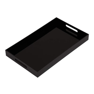Glossy Black Sturdy Acrylic Serving Tray With Handles-12X20inch-Serving Coffee,Appetizer,Breakfast,Butler-Kitchen Countertop Tray-Makeup Drawer OrganiThis product for serving breakfast, appetizers, wine, coffee,beverages,snacks for guests or used as bed trays for eating; Used as decorative trays for your lovely home or workplace,indoor and outdoors; Used perfectly as countertop organizers for your kitchen,living room; Used as ottoman trays,vanity table trays,CoffeeLatitude Run