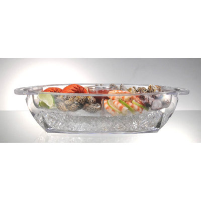 Buffet on Ice 4 Compartment Vented Food TrayBuffet On Ice Food delights stay chilled and fresh over a bed of ice. The bottom tray can be filled with cubed or crushed ice, while the upper 4-compartment food tray is positioned above the ice.The food tray is vented to allow coldness from the ice below to flow through to keep food chilled and tasty. A handy removablProdyne