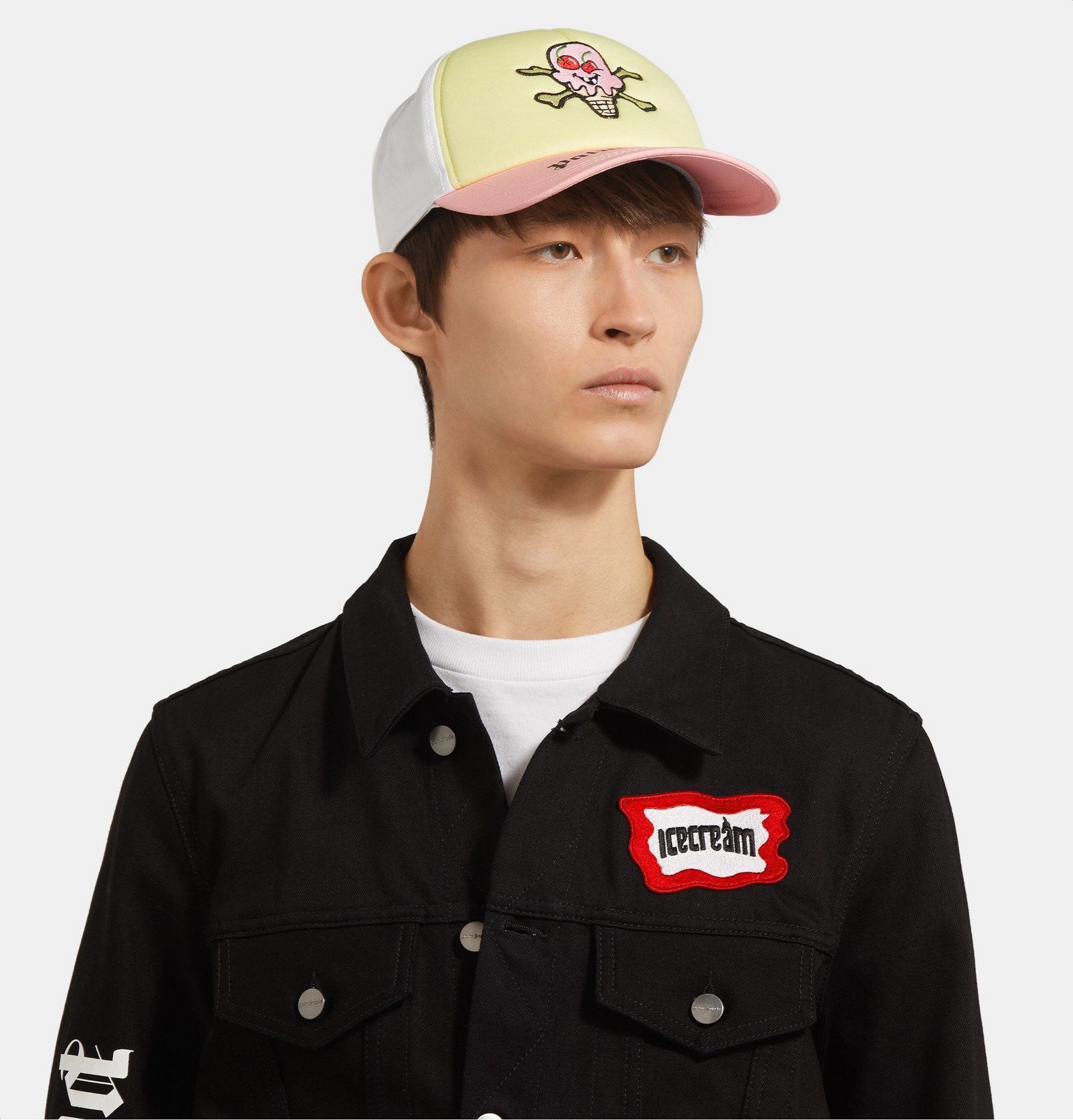 Icecream x Palm Angels - Ice Cream - F/w 19 - Ice Cream Skull Cap in White, Men'sPalm Angels - Ice Cream - F/w 19 - Ice Cream Skull Cap This Baseball Cap Is Part Of Palm Angels' Capsule Collection With Icecream, As Denoted By The 'cones And Bones' Insignia Embroidered Across The Front. It's Panelled In Neapolitan Shades And Can Be Easily Adjusted At The Back For The Perfect Fit Tagged Size: One SizIcecream x Palm Angels