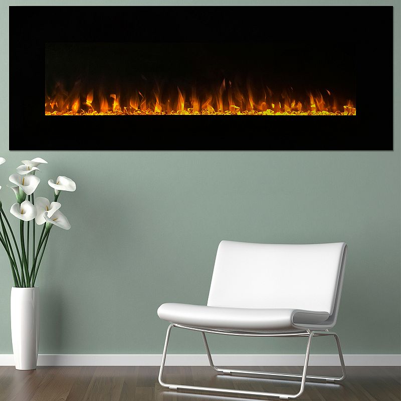The Northwest 54" LED Fire & Ice Electric Fireplace & Remote, BlackOperate this The Northwest mini curved fireplace with or without heat for a relaxing atmosphere.PRODUCT FEATURES Sleek black glass design Control the temperature with a touch of a button Adjustable color changing LED flame Two heat settings WHAT'S INCLUDED Fireplace Mounting brackets Screws 20"H x 54"W x 4.8"D Weight:The Northwest