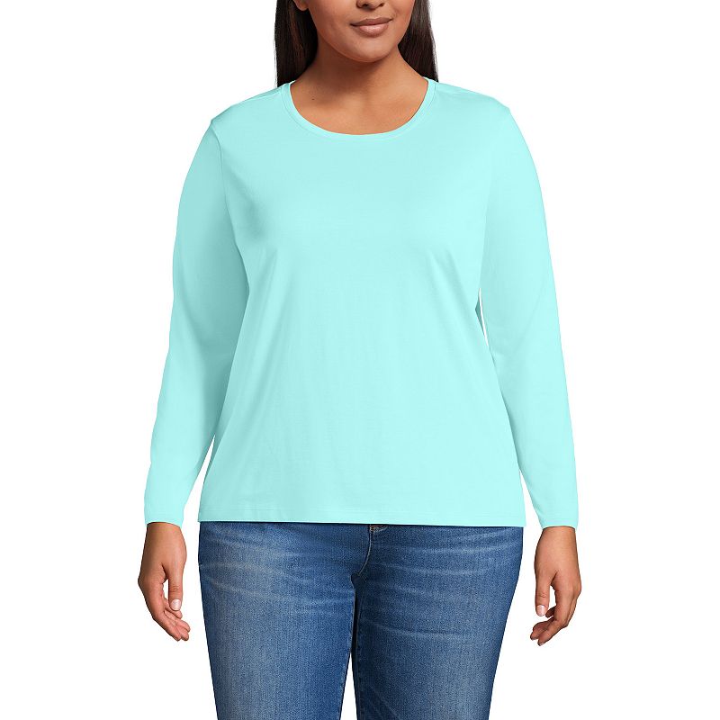 Plus Size Lands' End Relaxed Supima Cotton Crewneck Tee, Women's, Size: 1XL, Pale Blue IceYour basics get a serious upgrade with this women's Lands' End relaxed fit tee, featuring a superior Supima cotton.Click on this WOMEN'S GUIDE to find the perfect fit and more! Soft, smooth Supima cotton Classic crewneck style Long sleevesFIT & SIZING Relaxed fit Falls to mid hipFABRIC & CARE Supima cotton Machine washLands' End