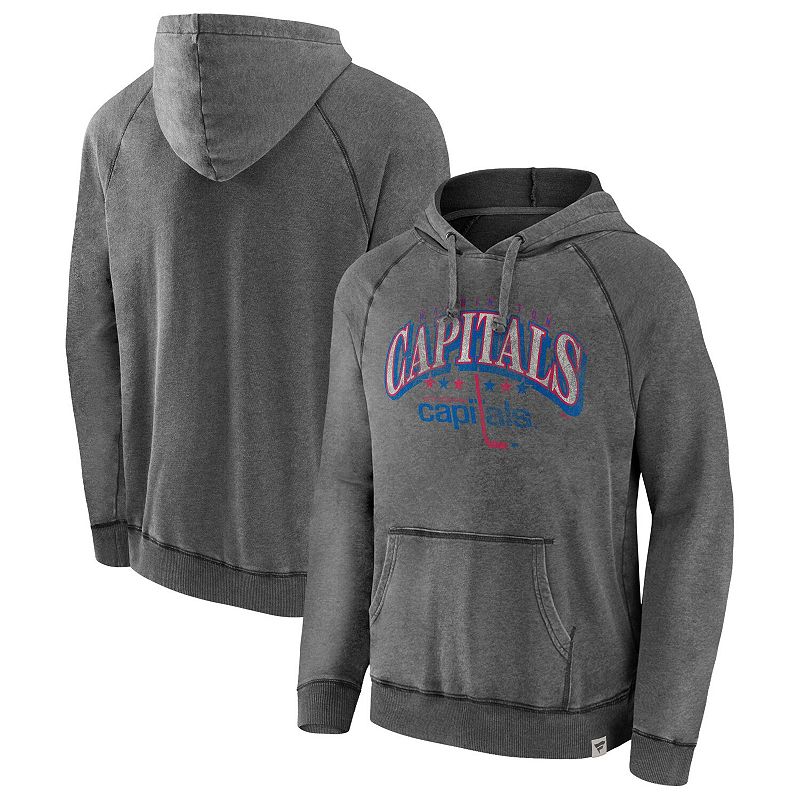 Men's Fanatics Branded Gray Washington Capitals Heritage Broken Ice Washed Raglan Pullover Hoodie, Size: Small, GreyWhen the temperature drops, raise your game in style with this Washington Capitals Heritage Broken Ice Washed pullover hoodie from Fanatics Branded. The distressed graphics give this hoodie a sweet vintage look, calling to mind the storied history of your favorite franchise. The raglan sleeves offer more room for increFanatics