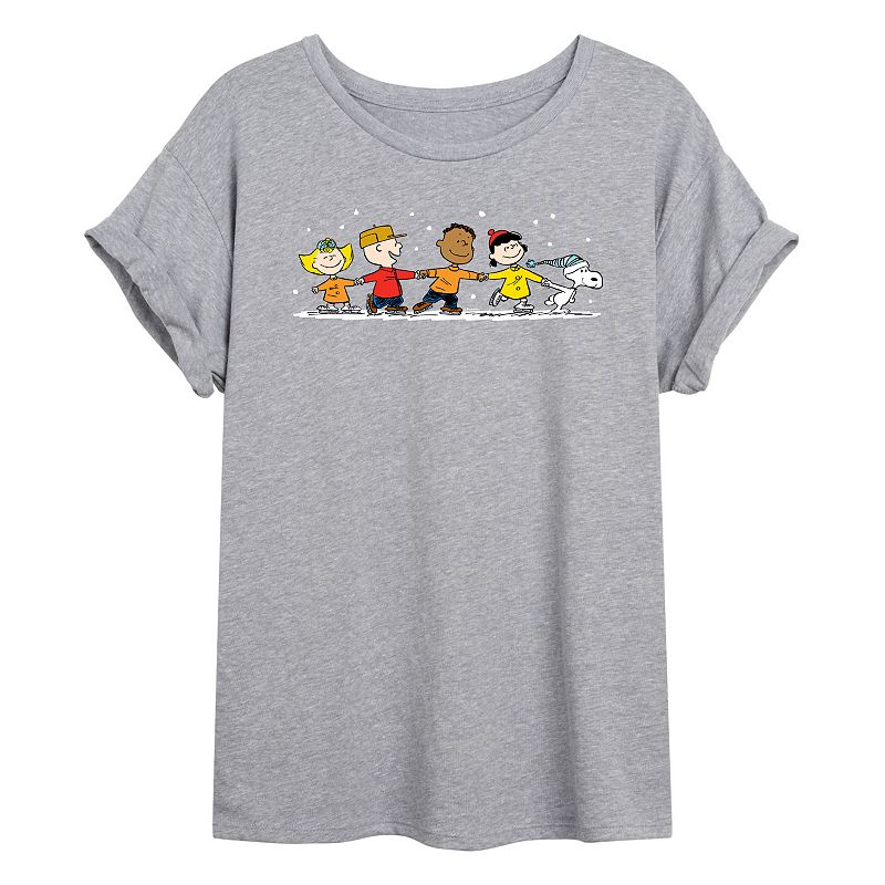 Juniors' Peanuts Group Ice Skating Oversized Tee, Girl's, Size: XL, Grey GrayShe will love showing off her style with this Juniors' Peanuts Group Ice Skating Oversized Tee. FEATURES Short sleeves ScoopneckFIT & SIZING Oversized FitFABRIC & CARE Light Gray and Birch Colors: Cotton/Polyester ; Solid Colors: Cotton Machine wash Imported Size: X Large. Color: Heather Gray. Gender: female. Age GroupLicensed Character