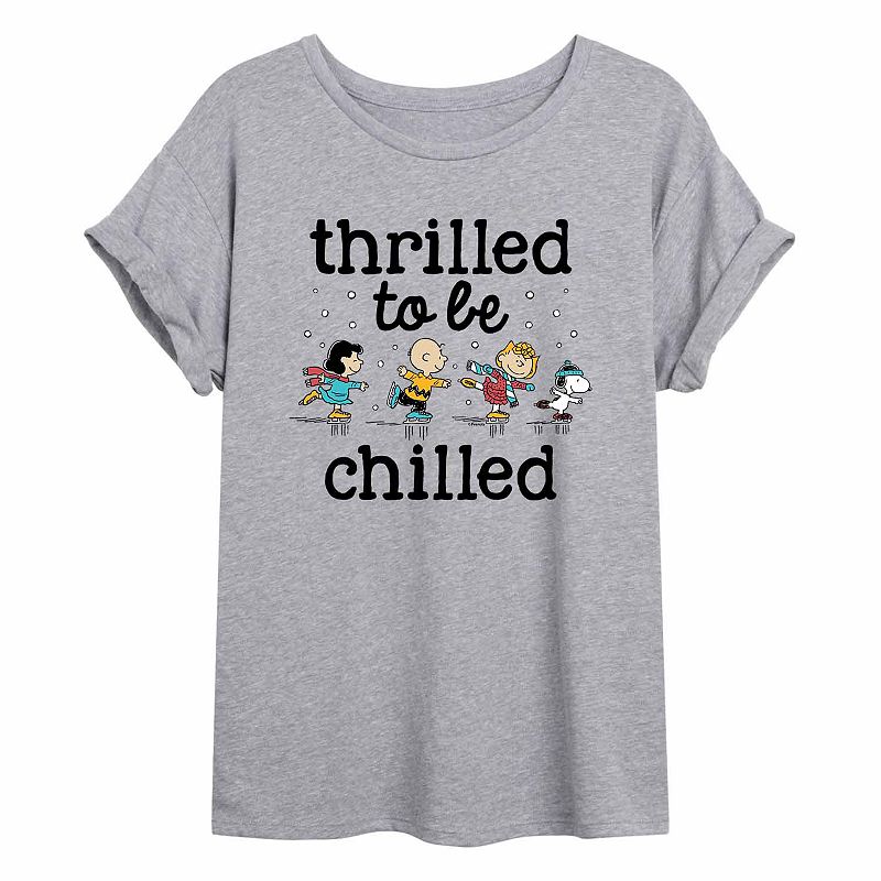 Juniors' Peanuts "Thrilled To Be Chilled" Ice Skating Flowy Tee, Girl's, Size: Medium, GreyYou'll be cool as ice in this juniors' Peanuts gang ice skating graphic tee. You'll be cool as ice in this juniors' Peanuts gang ice skating graphic tee. Crewneck Short sleevesFABRIC & CARE Cotton, polyester Machine wash Imported Size: Medium. Color: Grey. Gender: female. Age Group: kids. Material: Cotton Blend.Licensed Character