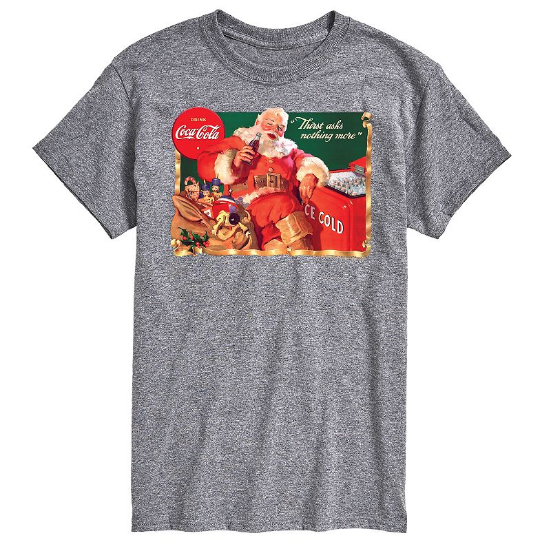 Big & Tall Coca-Cola Vintage Santa Ice Cooler Graphic Tee, Men's, Size: 5XB, GrayCelebrate the holidays in cool style with this Big & Tall Coca-Cola Vintage Santa Ice Cooler Graphic Tee. Celebrate the holidays in cool style with this Big & Tall Coca-Cola Vintage Santa Ice Cooler Graphic Tee. FEATURES Crewneck Short sleeveFABRIC & CARE Solid color: cotton; Heather colors: cotton, polyester Machine wLicensed Character