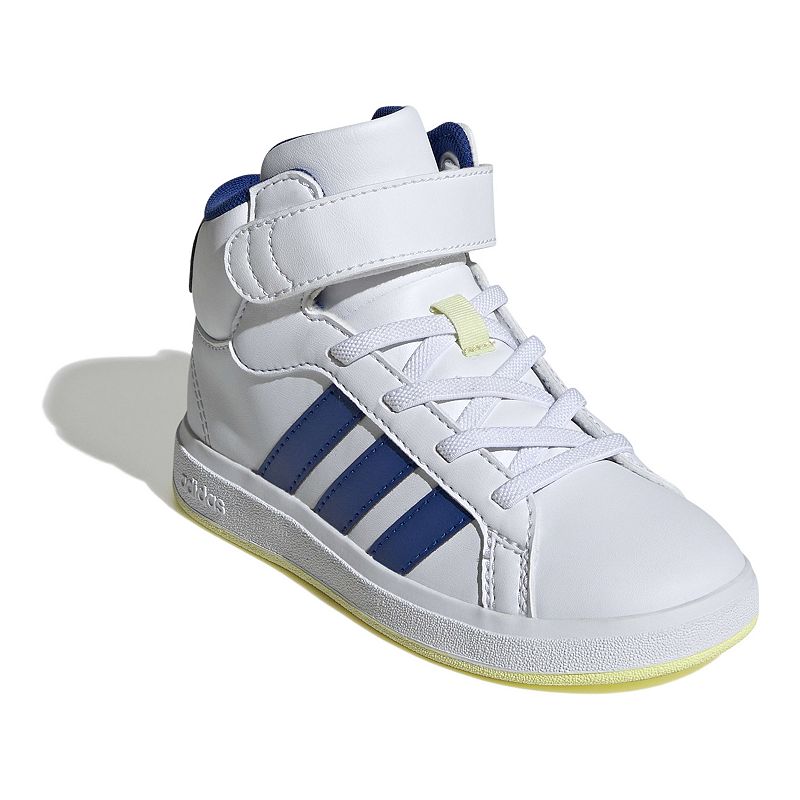 adidas Grand Court Girls Mid Sportswear Tennis Shoes, Boy's, Size: 4, Blue Ice YellowSporty and sturdy, these kids' adidas sneakers stand up to daily adventures. A faux-leather upper with a soft lining gently supports the foot while the rubber cupsole flexes with every movement.Click this FOOTWEAR GUIDE to find the perfect fit and more! DETAILS Textile & synthetic upper Textile lining Rubber Outsole Ruadidas