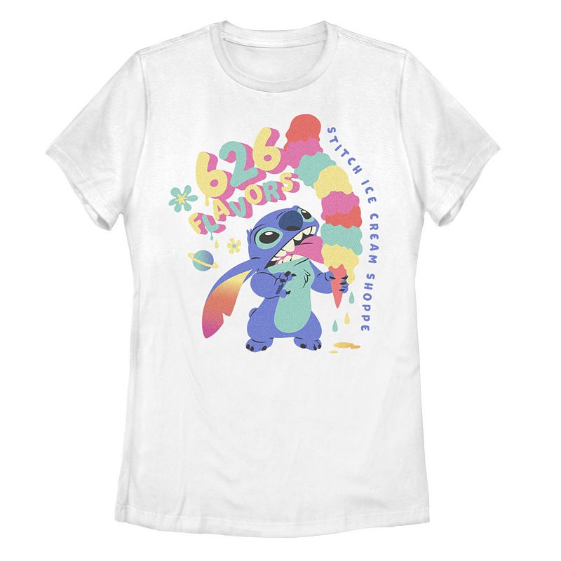 Disney's Lilo & Stitch Ice Cream Shoppe 626 Flavors Juniors' Graphic Tee, Girl's, Size: Large, WhiteShe'll love the look and feel of this Juniors' Disney Lilo & Stitch Ice Cream Shoppe 626 Flavors Graphic Tee. She'll love the look and feel of this Juniors' Disney Lilo & Stitch Ice Cream Shoppe 626 Flavors Graphic Tee. FEATURES Crewneck Short SleevesFABRIC & CARE Cotton Machine wash Imported Size: Large. Color: White.Disney