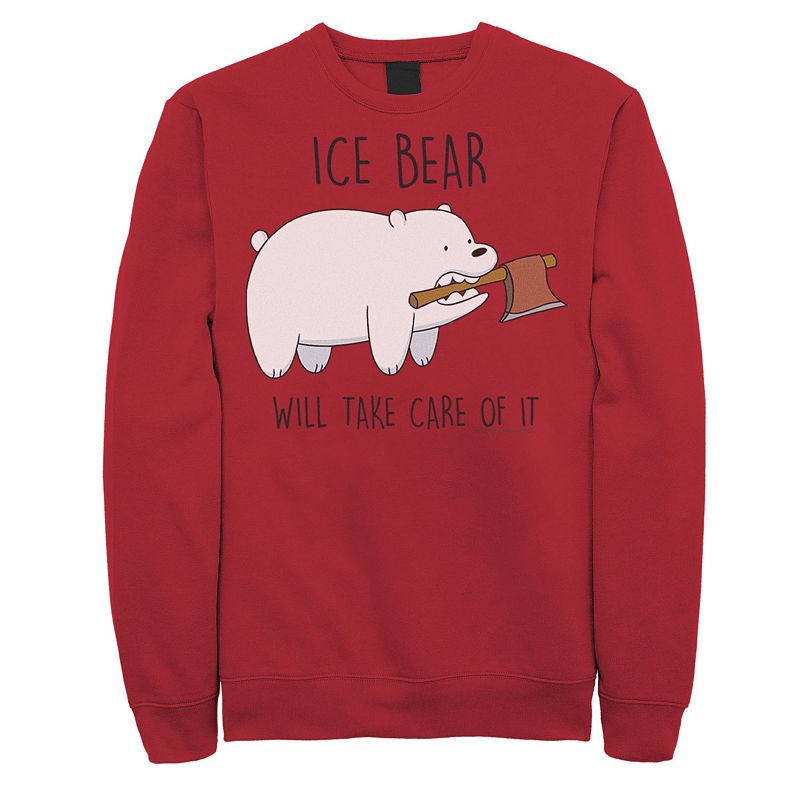Men's Cartoon Network Bare Bears Ice Bear Take Care Of It Axe Fleece, Size: Medium, RedSupport your favorite cartoon bear brother in this men's We Bare Bears 'Ice Bear Take Care of It' axe fleece. Support your favorite cartoon bear brother in this men's We Bare Bears 'Ice Bear Take Care of It' axe fleece. Long sleeve CrewneckFABRIC & CARE Cotton, polyester Machine wash Imported Color: Red. Gender: male.Licensed Character