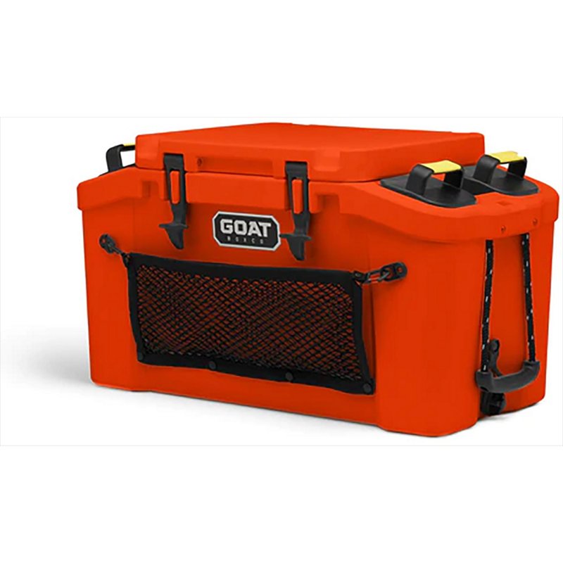 GOAT BOXCO HUB 50 Cooler System Desert Orange, 50 Qt - Ice Chests/Wtr CoolrsPack for the next excursion with the GOAT BOXCO HUB 50 Cooler System. The Freeze Frame insulation helps keep food and drinks hot or cold, while the enhanced cooler wall depth retains ice and cold. The nylon rope handles and soft-touch grips ensure comfortable handling. and the 4 corner turrets front-facing cargo net prGOAT BOXCO