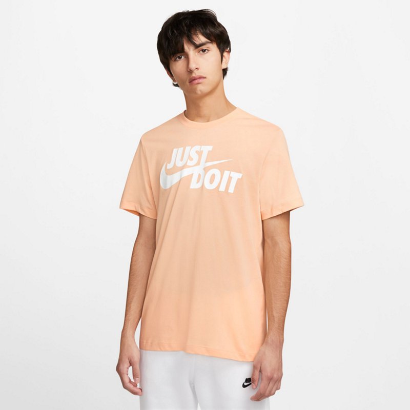 Nike Men's Just Do It T-Shirt Ice Peach, Large - Men's Athletic Performance TopsThe Nike Men's Just Do It T-shirt boasts a casual and comfortable look. This tee is crafted from 100% cotton fabric for a soft, breathable feel and features short sleeves and a crew neck. The "Just Do It" front graphic will help keep you motivated throughout the day. Nike Men's Just Do It T-Shirt Ice Peach, Large - MenNike