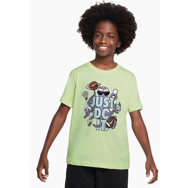 Nike Boys' Octopus Short Sleeve T-Shirt Lime Ice, X-Small - Boy's Athletic TopsShow off his love for sports with the Nike Boys' Octopus Short Sleeve T-shirt. This fun t-shirt is made of lightweight cotton for a soft and breathable fit. The octopus print creates a cool look that highlights his fun personality. Nike Boys' Octopus Short Sleeve T-Shirt Lime Ice, X-Small - Boy's Athletic Tops at AcadeNike