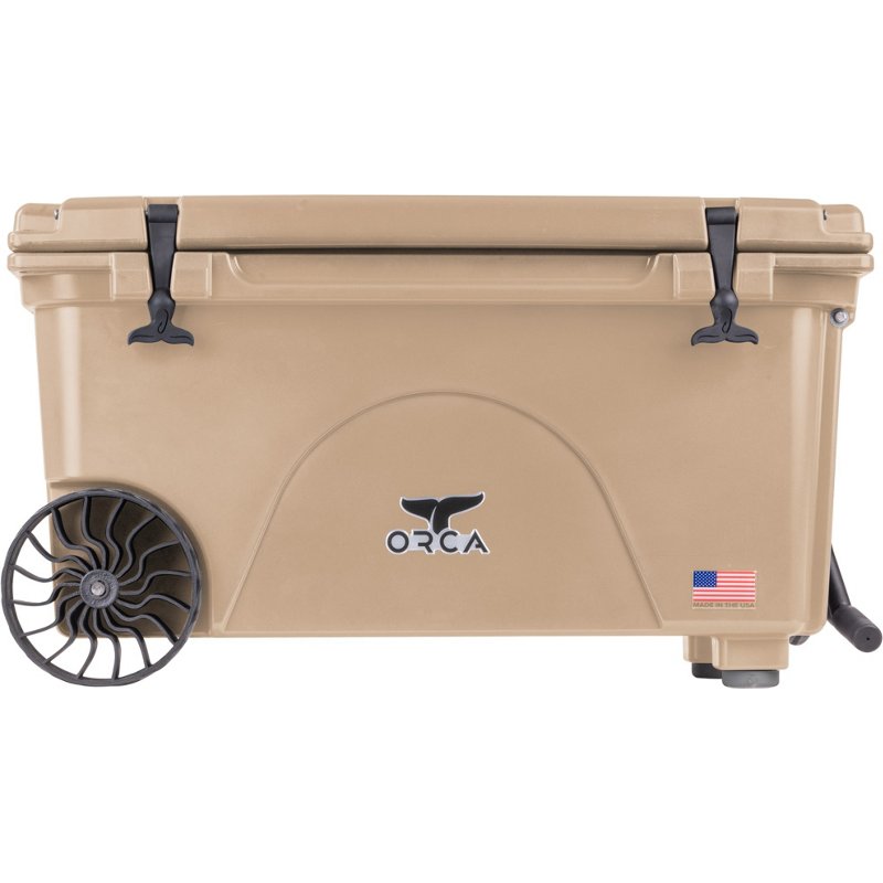 ORCA 65 qt Wheeled Hard Cooler Tan - Ice Chests/Wtr CoolrsStock up for your next camping trip with the ORCA 65 qt Wheeled Hard Cooler. The rotomolded construction stands up to wear and tear, while the extendable comfort-grip handle and easy-rolling wheels offer simple maneuverability. The flex-grip handles allow for easy transport, while the cargo net provides additional storORCA