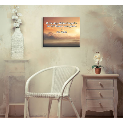 Artsy Quote "If the day did not require an AK then it was good." By Ice Cube Gallery Wrapped CanvasMuseum quality fine art giclee reproduction printed on artist grade canvas. Wrapped and framed in a two inch black ornate wood frame. Latitude Run Overall Size: 13" H x 18" WLatitude Run