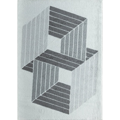 Azalea Contemporary Ice Cube Area RugImmerse yourself in the distinctive allure of the Azalea Contemporary Area Rug. Intricately crafted, this rug introduces an abstract mosaic of elongated shapes, playing with the viewer's perspective to reveal interlinked hexagons or a seemingly 3-dimensional object. Each glance offers a fresh interpretation, making itEbern Designs