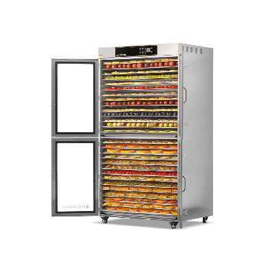 2 Zone, 28 Tray, 130 sq. ft. Tray Area, Premium Commercial DehydratorThis 100% stainless steel dehydrator is designed for ongoing commercial use with our high-efficiency forced air convection system. BenchFoodsBenchFoods