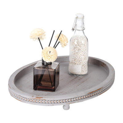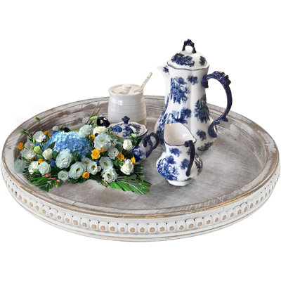 16" Round Wooden Decorative Tray - Rustic Serving Tray For Farmhouse, Vintage Look For Coffee Table, Living Room, Kitchen Counter, Breakfast, WashwhitThe edge of the wood tray is designed with beaded, Rustic decorative wood tray bring vintage farmhouse style to your home Bungalow RoseBungalow Rose