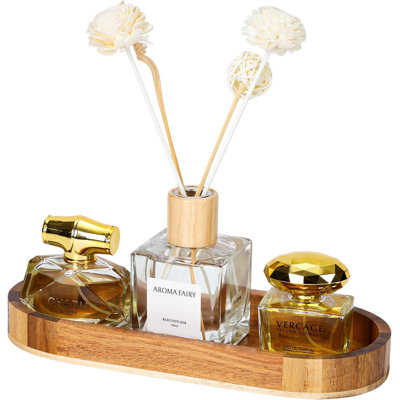 Acacia Wood Bathroom Vanity Tray - Small Decorative Organizer For Kitchen Counter, Toilet Tank, And Dresser Top - Candle And Perfume Tray For Home DecCrafted from 100% premium bamboo, this piece effectively declutters bathroom cluttered countertops. Whether you're organizing hand sanitizers, lotions, soaps, or other essentials. Our wooden vanity tray goes beyond mere organization it's a work of art that elevates your dresser's decor. Imagine your perfumes, cosmeticOphelia & Co.