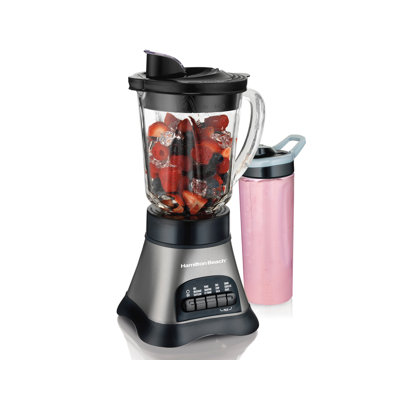 Hamilton Beach Wave Crusher Blender with Blend-in Travel JarBlend a batch of cold, creamy milkshakes for the family or a fresh smoothie to take on the go with the Hamilton Beach wave crusher blender. This 700-watt peak power blender comes with a 40 oz. glass jar and a 20 oz. travel jar can be used on the blender giving you the ultimate versatility in serving size and portabilitHamilton Beach
