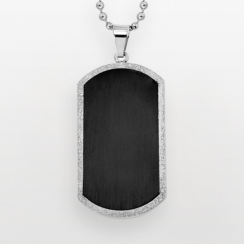 Stainless Steel and Black Immersion-Plated Stainless Steel Dog Tag - Men, Men's, Size: 24", MulticolorSleek style. A black immersion-plated stainless steel inlay gives this men's dog tag a streamlined look. Add a cool touch to any attire when you wear this stainless steel necklace. Click on this JEWELRY & WATCHES GUIDE to learn about fit, styles, materials and more! Diamon dust border adds eye-catching detail. Details:Unbranded