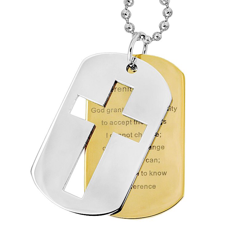 Stainless Steel and Gold Tone Immersion-Plated Stainless Steel Serenity Prayer Dog Tag - Men, Men's, Size: 24", MulticolorWise and wonderful. A gold-tone immersion-plated stainless steel dog tag engraved with the Serenity Prayer gives this men's necklace inspired style. Express your faith when you wear this stainless steel necklace. Click on this JEWELRY & WATCHES GUIDE to learn about fit, styles, materials and more! Stainless steel overlUnbranded