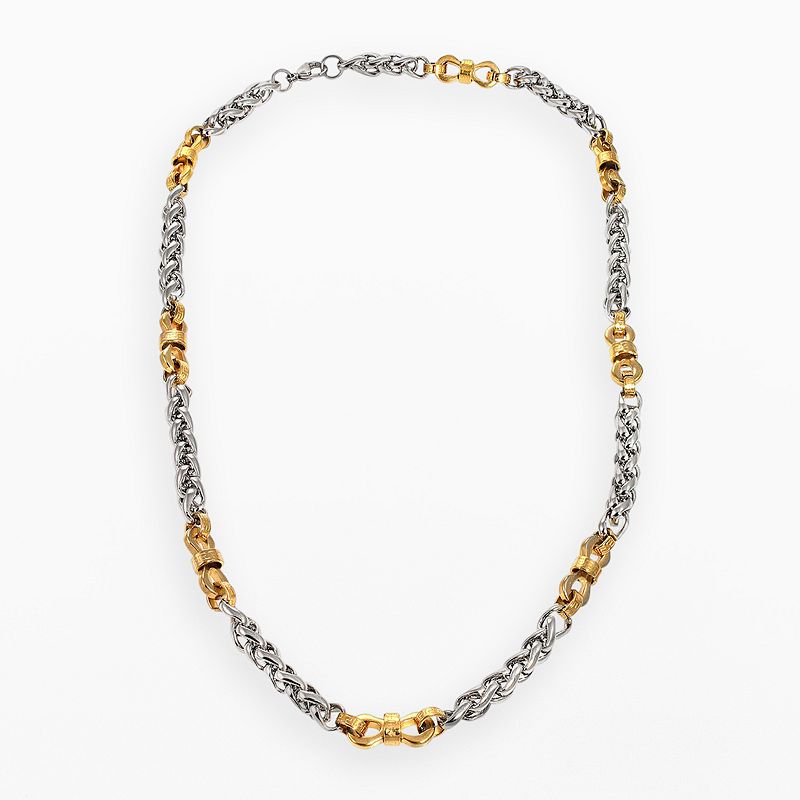 Stainless Steel and Yellow Immersion-Plated Stainless Steel Necklace - Men, Men's, Size: 22", GreyDistinctive style is effortless with this trendsetting necklace. Click on this JEWELRY & WATCHES GUIDE to learn about fit, styles, materials and more!Necklace Details: Length: 22 in. Clasp: lobster-claw Metal: stainless steel, yellow immersion-plated stainless steel Size: 22". Color: Grey. Gender: male. Age Group: adulUnbranded
