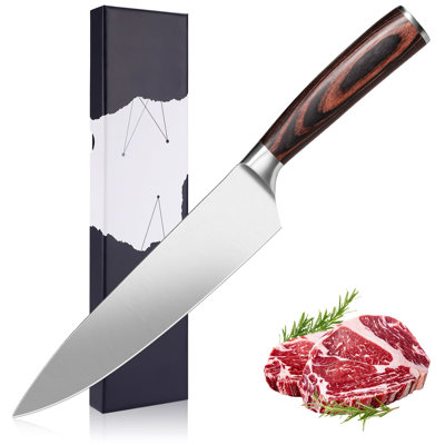 Chef Knife 8 Inch - Sharp Kitchen Knife High Carbon Stainless Steel Blade, Gyuto Knife Ergonomic Wood Handle, Professional ChefS Knife For Home KitchPremium Material Sharp Knife: This chef knife is manufactured from high carbon stainless steel that maintains its functionality for a long time, this 8 inch chefs knife is razor sharp, rust-resistant, durable, tarnish-free and easy to re-sharpen. MODERN WALLS LLCMODERN WALLS LLC