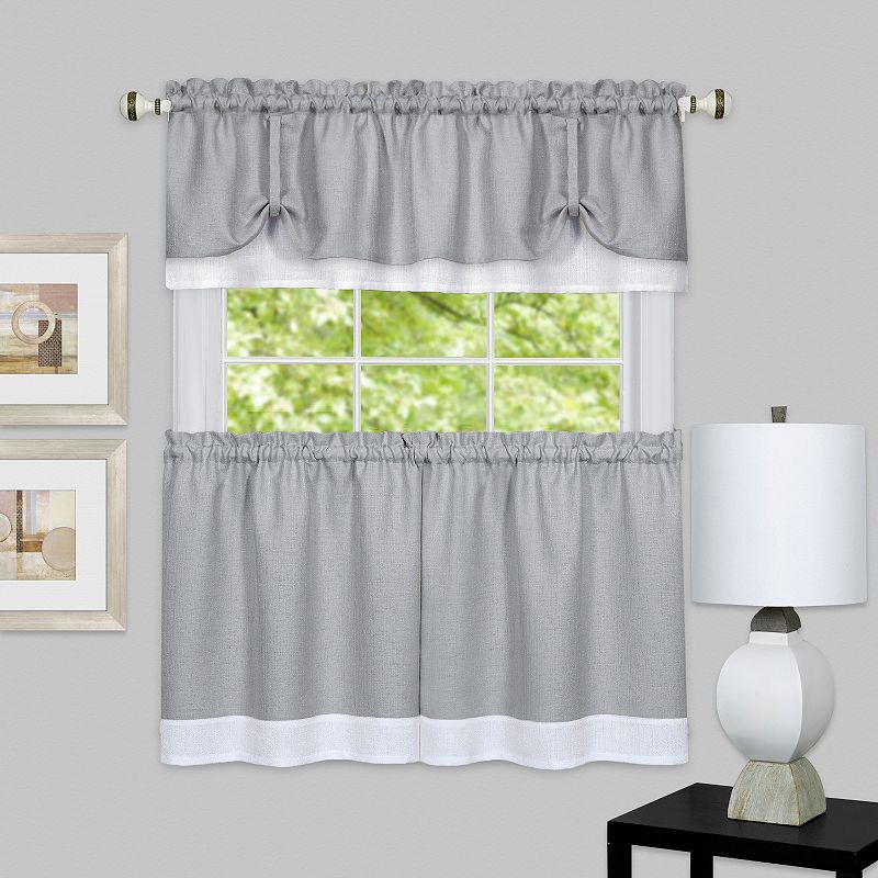 Achim 3-piece Darcy Tier & Valance Kitchen Window Curtain Set, GrayGive your window a makeover with these Achim Darcy tier curtains. Click this HOME DECOR & FURNITURE GUIDE to find the perfect fit and more!FEATURES 2 tier panels Textured double layer 1.5-inch rod pocket Fully lined WHAT'S INCLUDED 2 panels 1 valance SIZING Single panel: 29'' x 24'' (total width: 58'' x 24'') Single paAchim