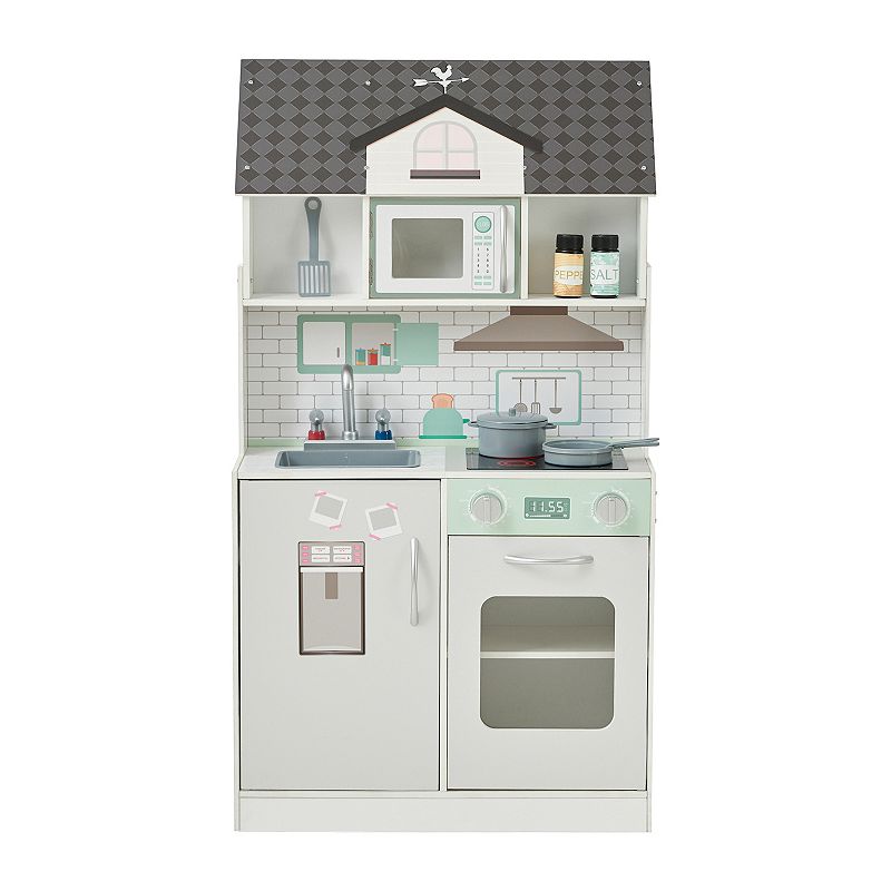 KidKraft Cheerful Chef Blue Wooden Play Kitchen & 5 Accessories, MultiMade of wood to last through many pretend meals through the years, the KidKraft Cheerful Chef Play Kitchen is ready to bring a smile to any kid's face.Made of wood to last through many pretend meals through the years, the KidKraft Cheerful Chef Play Kitchen is ready to bring a smile to any kid's face.FEATURES Fun and iKidKraft
