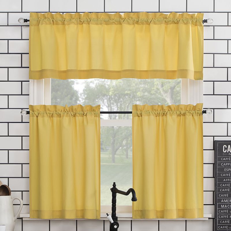 No. 918 Martine Microfiber Semi-Sheer Kitchen Curtain Valance and Tiers Set, YellowEasily change the look of your existing window with this stylish window curtain from No. 918. Easily change the look of your existing window with this stylish window curtain from No. 918. Includes 1 valance and 2 tier curtains Light filtering 0.75-in. max rod diameter Rod pocket Soft microfiber fabric Gently filters liNo. 918