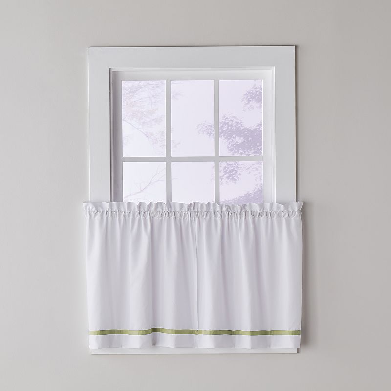 Saturday Knight Ltd. Kate Tier Kitchen Window Curtain Set, GreenFeatures 2 tier curtains 1 3/4 pole pockets Solid border Sizing 57'' x 24'' (total width) 57'' x 36'' (total width) Construction & Care Polyester Machine wash Imported Size: 28X24. Color: Sage. Gender: unisex. Age Group: adult.Saturday Knight, Ltd.