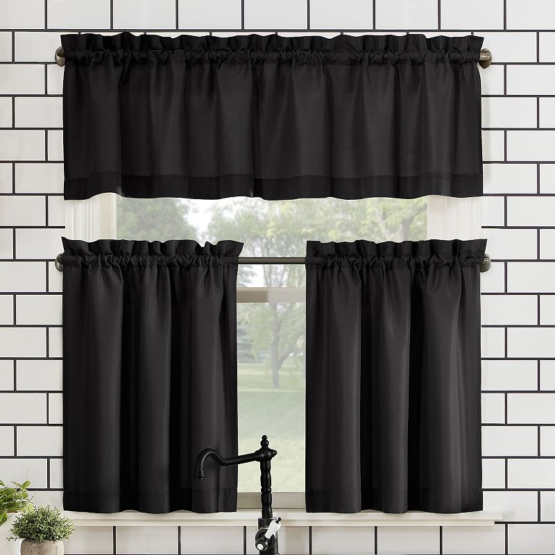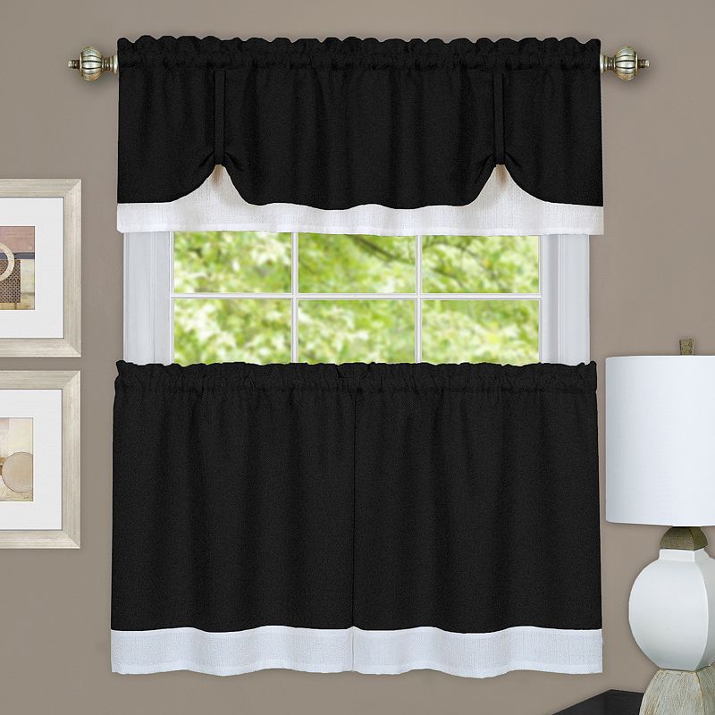 Achim 3-piece Darcy Tier & Valance Kitchen Window Curtain Set, BlackGive your window a makeover with these Achim Darcy tier curtains. Click this HOME DECOR & FURNITURE GUIDE to find the perfect fit and more!FEATURES 2 tier panels Textured double layer 1.5-inch rod pocket Fully lined WHAT'S INCLUDED 2 panels 1 valance SIZING Single panel: 29'' x 24'' (total width: 58'' x 24'') Single paAchim
