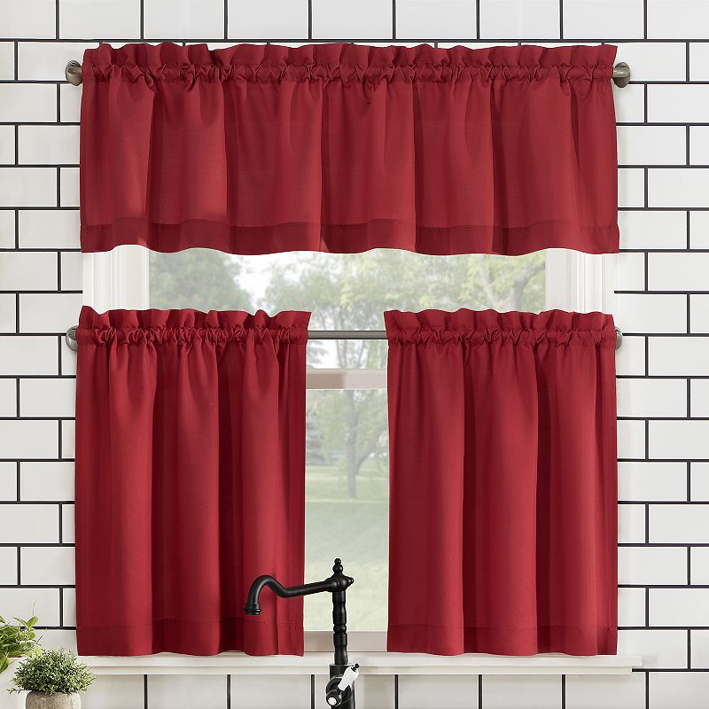 No. 918 Martine Microfiber Semi-Sheer Kitchen Curtain Valance and Tiers Set, RedEasily change the look of your existing window with this stylish window curtain from No. 918. Easily change the look of your existing window with this stylish window curtain from No. 918. Includes 1 valance and 2 tier curtains Light filtering 0.75-in. max rod diameter Rod pocket Soft microfiber fabric Gently filters liNo. 918