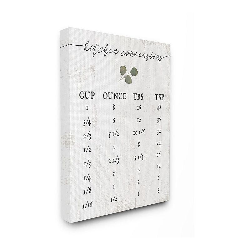 Stupell Home Decor Kitchen Conversion Chart Canvas Wall Art, GrayBaking pros will love the convenience of this Stupell Home Decor Kitchen Conversion Chart Canvas Wall Art. Baking pros will love the convenience of this Stupell Home Decor Kitchen Conversion Chart Canvas Wall Art. Artist: Daphne Polselli Ready to hang Small: 16"H x 1.5"W x 20"D, weight: 3 lbs. Medium: 24"H x 1.5"W x 30Stupell Home Decor