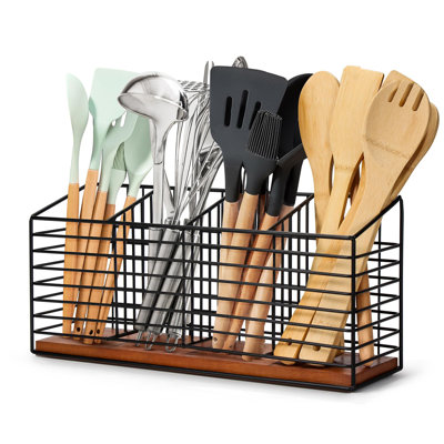 Large Utensil Holder For Kitchen Counter Black Metal Cooking Utensil Organizer For Countertop 4 Compartments Kitchen Tools Holder For Spatula UtensilThis product is open design ensures good ventilation, no accumulated water, makes the utensils not easy to get moldy. Easy to wipe down and clean. This extra large rectangle utensil holder for countertop provides convenient and stylish storage for your large or long cooking tools, holding 35 to 40 common utensils, idea17 Stories