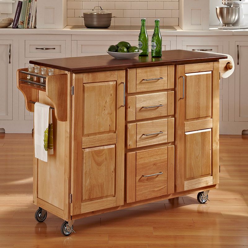 Oak-Top Four Drawer Kitchen Cart, NaturalFeaturing clean lines and a mobile design, this kitchen cart is a must-have. Four, slide-out utility drawers hold kitchen necessities. Adjustable, interior shelf makes for customized positioning. Spice rack keeps essentials at hand. Towel bar and paper towel bar allows for easy cleanup. Locking, rubber caster wheels adhomestyles