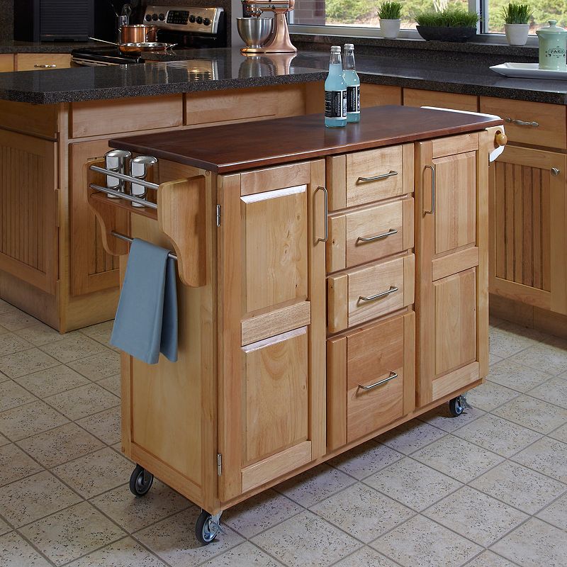 Cherry-Top 4-Drawer Kitchen Cart, NaturalStore your stuff in style with this fabulous kitchen cart. Four, slide-out utility drawers hold kitchen necessities. Adjustable, interior shelf makes for customized positioning. Spice rack keeps essentials at hand. Towel bar and paper towel bar allows for easy cleanup. Locking, rubber caster wheels add stability. 35 1/homestyles