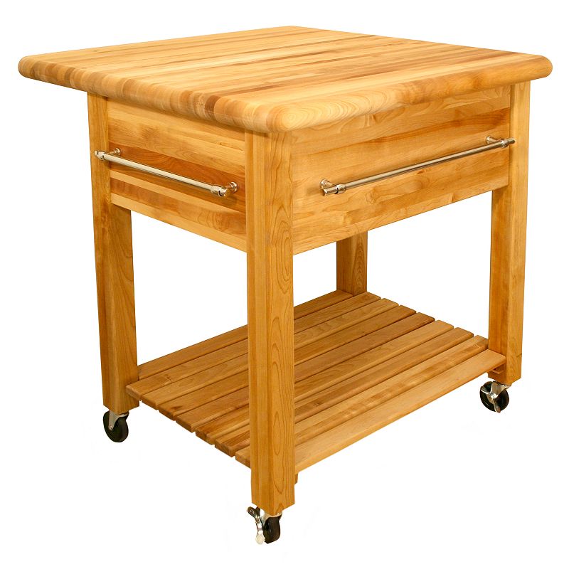 Catskill Craftsmen Butcher Block Top Kitchen Cart, NaturalThis Catskill Craftsmen butcher block table is the ultimate chopping station. In natural finish.Product Feastures: Drawer and cabinet creates ample storage space. Adjustable interior shelf makes for perfect positioning. Nickel-finished spice rack and towel bar offers convenience. Butcher block top provides an appealingCatskill Craftsmen