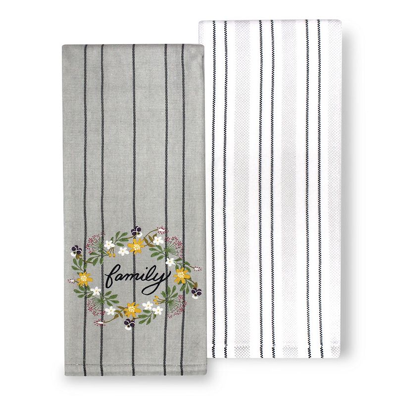 Food Network Farmhouse Family Kitchen Towel 2-pk., MultiAccent your kitchen's rustic decor with these lovely Farmhouse towels from Food Network. Accent your kitchen's rustic decor with these lovely Farmhouse towels from Food Network. Floral "family" detail Striped designWHAT'S INCLUDED Two 16'' x 28'' kitchen towels Cotton Machine wash ImportedSUSTAINABILITY FEATURES TestedFood Network